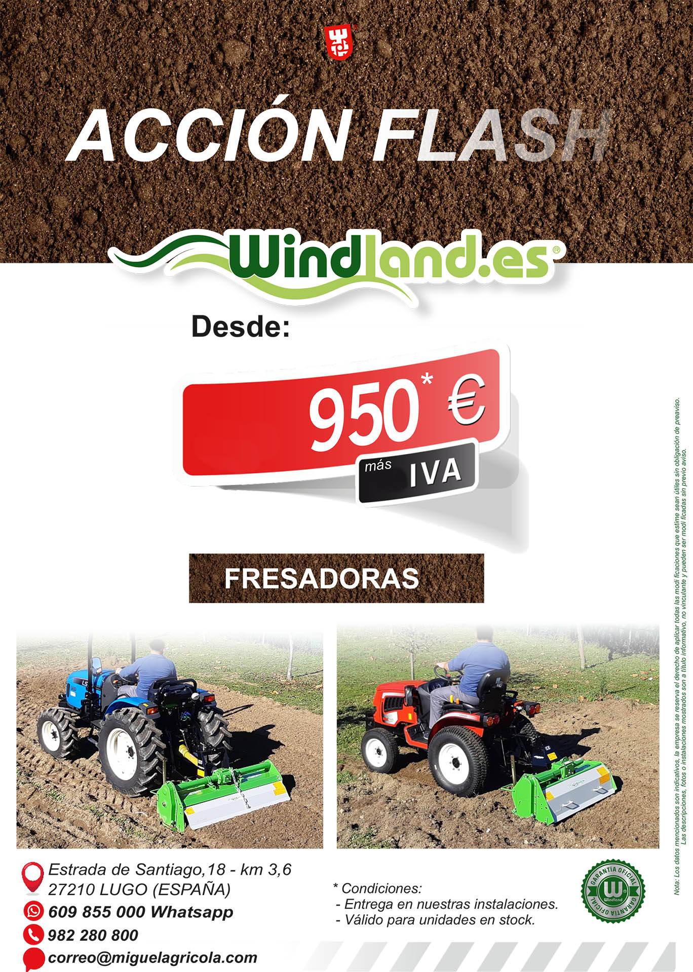 Ponemos en marcha nuestra Acción Flash con un precio especial en fresadoras Windland para que prepares tu terreno de la mejor manera y al mejor precio.