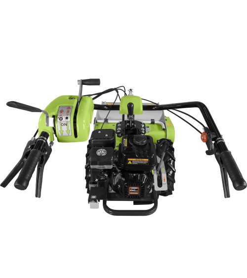 El manillar es ajustable en altura y puede ser desplazado lateralmente para responder a las exigencias de los clientes y poder trabajar de manera fácil y manejable cerca de ramas bajas u obstáculos.