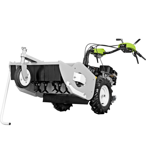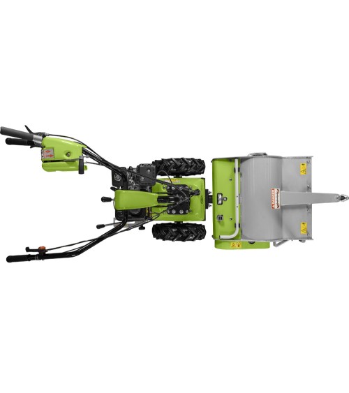 Los accesorios disponibles son: barredora orientable e inclinable de 100 cm, barra de siega a doble cuchilla de 132 cm y la pala frontal orientable de 100 cm.